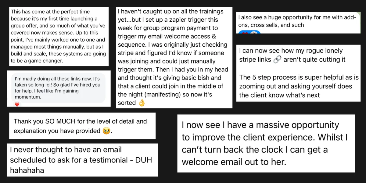You're not just gathering more information & overwhelm about endless sh*t you need to automate, you're building it while you're here with me.